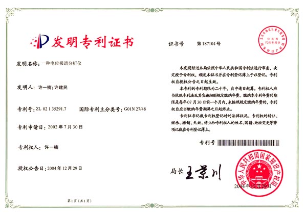現(xiàn)在又新領企業(yè)另創(chuàng)新的事業(yè),公司堅持原始創(chuàng)新,不作低水平的重復,擁有一批自主知識產(chǎn)權,獲授權電化學分析儀器方面發(fā)明專利兩項,實用